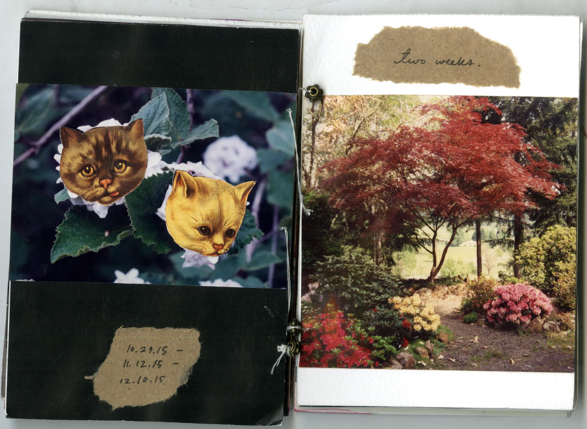 Two Weeks was a month long book making project detailing the emotions felt two weeks after the end of a romantic relationship. Through the process of manual collage – finding visual elements, cutting out visual elements, mapping out the visual compositions of each page, and assembling and binding the book – I was able to process my emotions and turn them into something productive and tangible.